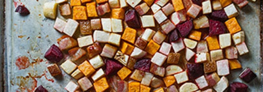 - 5 cups root vegetables (such as turnips, beets, rutabagas, carrots and celery root), diced into 1/2-inch cubes