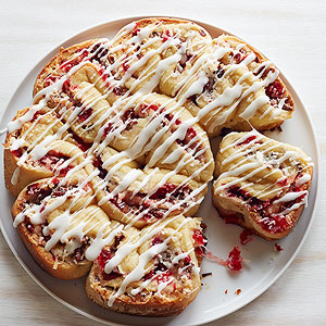 Turn dough out onto a lightly floured surface. Roll into a 15x12-inch rectangle; brush with melted butter. With a long side toward you, sprinkle the cherries, pecans, and coconut over the dough. Fold top and bottom thirds over filling. Pinch along the long open seam to seal.