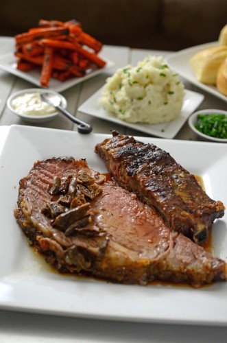 9. Remove from the grill. You can let it rest for 5 minutes but it isn't needed - it already settled during the previous rest. Slice, top with some of the porcini au jus and serve.