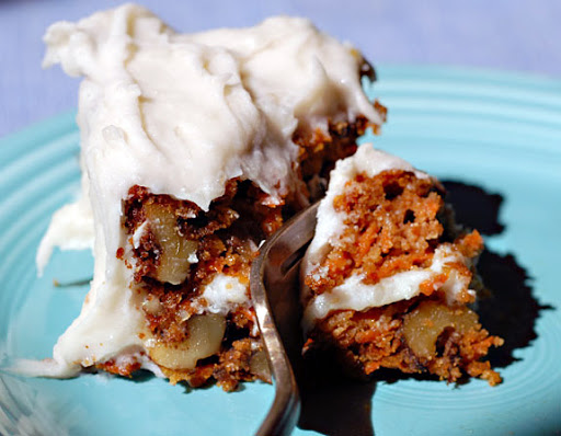 3. Stir carrots, raisins and walnuts into wet ingredients