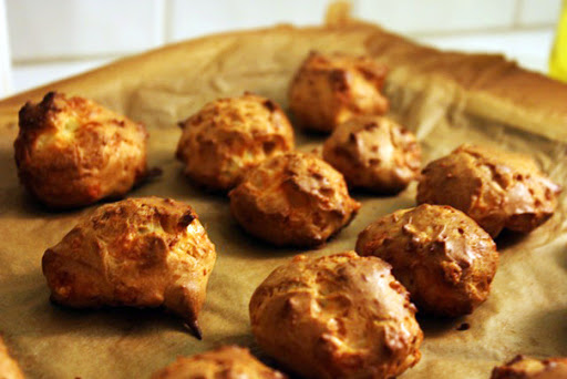 If you want to bake them all at once, place them both in the oven and turn the oven temperature down to 375. Bake for 12 minutes, then rotate the pans from front to back and top to bottom. Continue baking until the gougères are golden, firm, and puffed, another 12 to 15 minutes or so. Serve warm.