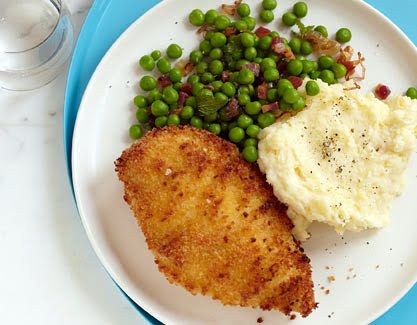 Working one breast at a time, remove chicken from the marinade and dredge in the crumb mixture. Place on rack. Bake until deep golden brown and an instant-read thermometer inserted into the center of the breast registers 160°F, about 25 minutes.