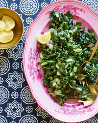 - 3 pounds Swiss chard—rinsed, stems cut into 1/2-inch pieces, leaves cut into 1-inch ribbons
