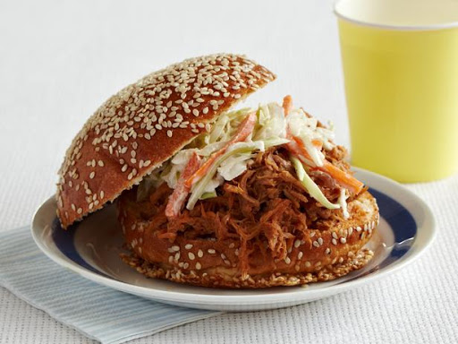 4. When cool enough to handle, pull the pork into shreds, removing all fat and gristle. Return to the cooker and cook uncovered, stirring often, until blended and the sauce is thickened, about 30 minutes. Serve on hamburger rolls with cole slaw. Makes enough for 10 to 12 sandwiches.