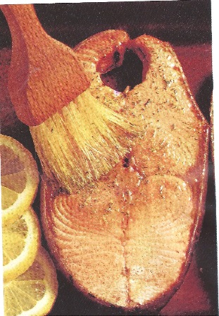 In paper towel lined 2-qt. oblong dish place steaks. Brush with melted butter mixed with lemon juice. Sprinkle with dill. Cover dish with wax paper.