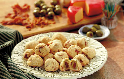 3 Wrap 1 heaping teaspoonful of dough around each olive. Arrange olives on prepared baking sheet.