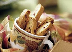 Dried cranberries and orange peel partner in a classic twice-baked cookie made for dunking.