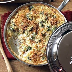 In a small bowl, stir together the panko, Parmigiano-Reggiano and olive oil, and season with salt and pepper. Sprinkle the panko mixture over the broccoli mixture. Transfer the pan to the oven and bake until the gratin is golden and bubbly, 40 to 45 minutes. Let rest for 15 minutes before serving. Serves 4 to 6.