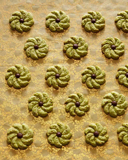Preheat oven to 350 degrees. Pulse pistachios with 1/4 cup confectioners' sugar in a food processor until finely ground.