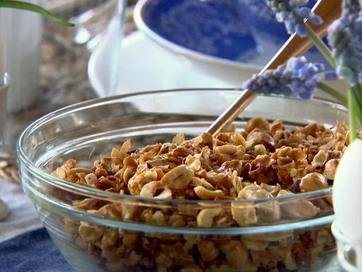 To make the granola, toss the hazelnuts, cashews, oatmeal, almonds, coconut, oil, and honey together in a large bowl until they are completely combined. Pour onto a sheet pan and bake, stirring occasionally with a metal spatula, until the mixture turns an even golden brown, about 20 minutes.