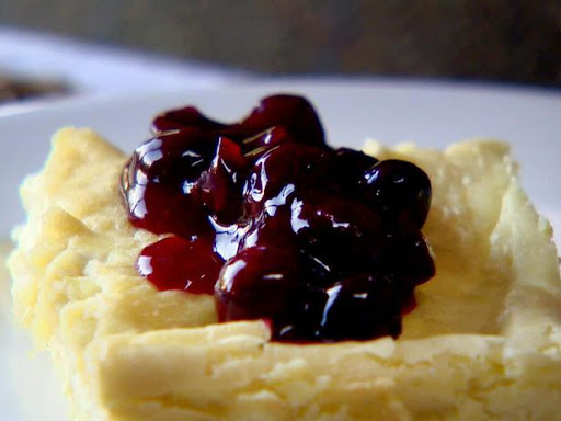 Return the pan to the oven and continue baking for 35 to 40 minutes, until the top is lightly golden and the filling is almost set. Remove from the oven and allow to stand 10 to 15 minutes. Cut the blintzes in squares and serve warm with the fresh blueberry sauce.