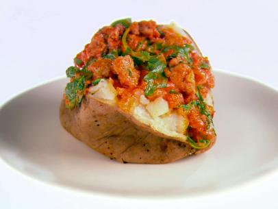 Cook's Note: To bake the potatoes: Position a rack in the center of the oven and preheat the oven to 350 degrees F. Using a fork, prick the skins of the potatoes all over. Wrap each potato in foil and bake until tender, about 1 hour. To cook the potatoes in a microwave: Using a fork, prick the skins of the potatoes all over. Place 2 potatoes at a time on a dinner plate. Microwave on high for 8 minutes. Turn the potatoes over and microwave until soft, 6 to 8 more minutes.