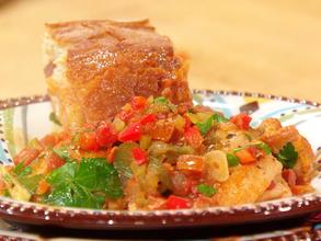 Add the chorizo to the skillet and cook for 1 minute. Add the frying pepper, celery, onion, garlic and chile. Cover partially and cook until the vegetables are just softened, about 3 minutes. Stir in the sherry and cook, stirring up any browned bits.