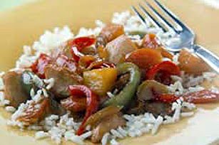 COOK on LOW for 7 to 8 hours (or on HIGH for 3-1/2 to 4 hours). During last 30 min. of cooking time, increase to HIGH. Stir cornstarch into reserved pineapple liquid; add to slow cooker along with the pineapple and peppers. Cook 30 min. or until peppers are crisp-tender and sauce is thickened. Serve over the rice.