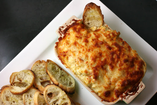 Preheat oven to 375 degrees F. Bake dip until heated through, about 25 minutes (about 35 minutes if chilled).