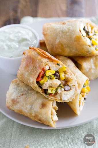 Cut each egg roll in half and serve with the Avocado Ranch Dipping Sauce. For the Avocado Ranch Dipping Sauce: