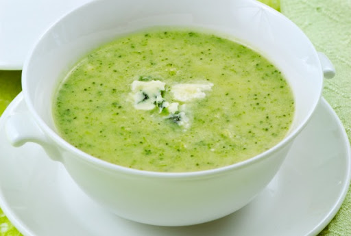 Melt 2 tablespoons butter in medium sized stock pot, and saute onion and celery until tender. Add broccoli and broth, cover and simmer for 10 minutes.