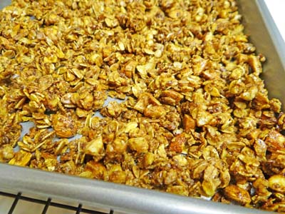 Transfer mixture to a rimmed baking sheet bake for 30 minutes, stirring once midway through baking.