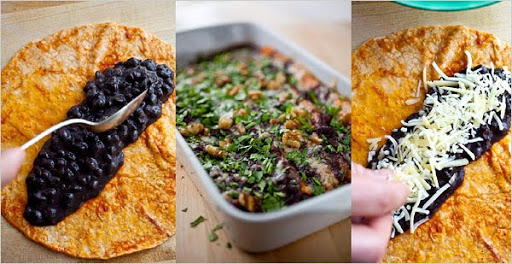 Advance preparation: The beans can be made through step 1 up to three days ahead. The enchiladas may be assembled and kept in the refrigerator overnight. Cover tightly with plastic and foil. Remember to remove the plastic before heating in the oven.