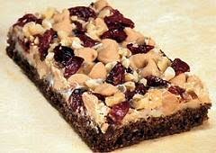 2. Pour Eagle Brand evenly over crumb mixture; sprinkle with peanut butter chips, dried cranberries and nuts; press down firmly.