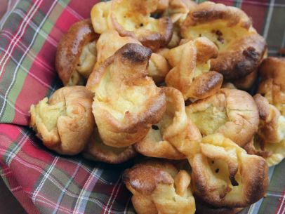 Pour the beef drippings in the cups of the hot pan, then pour in the batter filling the cups halfway and bake until the popovers are puffy and golden brown, about 30 minutes. Serve immediately.