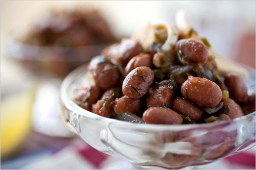 Variation: You can use canned beans for this dish. You will need 5 cups beans (three cans). Drain them and rinse well, and substitute water for the bean broth.