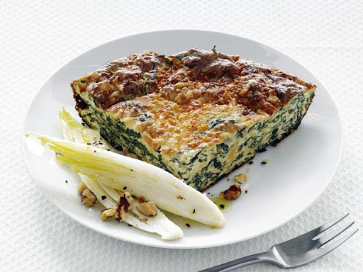 Drizzle the endive and walnuts lightly with olive oil and toss. Serve the quiche hot or at room temperature with the endive.