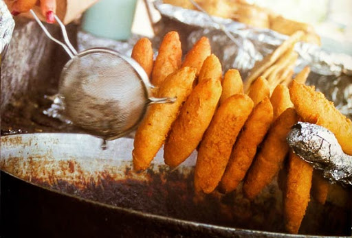 Slightly sweet fried dumplings, called festival, from Jamaica, these are traditionally served with jerk meats. Eat them hot—they're delicious!