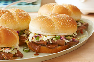 SERVE meat with coleslaw and rolls on the side. Or fill rolls with meat mixture and coleslaw just before serving.