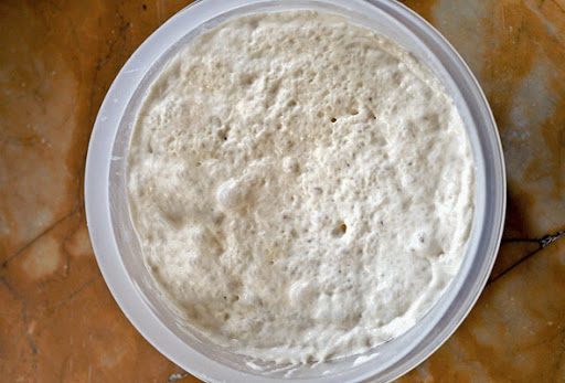 Transfer the biga to a lightly oiled bowl, cover with plastic wrap, and let rise at a cool room temperature for 6 to 24 hours. When ready, the starter will be triple its original volume and still be wet and sticky. (The bakers I admire most advise 10 to 11 hours for the first rise, but others are very happy with the 24 hours it takes for dough to truly become yesterday’s dough. If you like sour bread, allow your biga to rest for 24 to 48 hours, or you might even stretch it to
