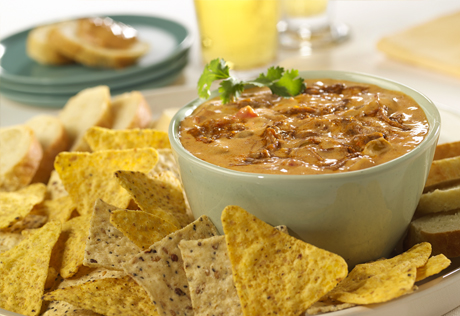 Stir in the beef and cook for 3 minutes or until the mixture is hot and bubbling. Serve with the tortilla chips for dipping.