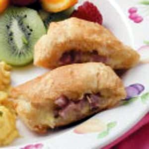 Fold points toward center and pinch edges to seal. Place on a lightly greased baking sheet. Bake at 375° for 11-13 minutes or until lightly browned. Yield: 4 servings (2 rolls each).