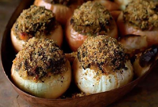 Roasted Onions Stuffed with Ground Lamb & Apricots