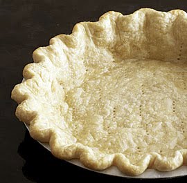 Gently transfer the dough to a 9-inch pie plate, preferably metal, by folding it in half and unfolding it into the plate. Do not stretch the dough as you line the pan, or it will spring back when baked. Gently lift the outer edges of the dough to give you enough slack to line the sides of the pan without stretching the dough.