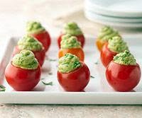3. Place tomatoes, open sides up, on a serving platter. Pipe filling into the tomato cups. Serve immediately or cover loosely and refrigerate up to 4 hours before serving. Sprinkle with snipped basil before serving. Makes 30 appetizers.