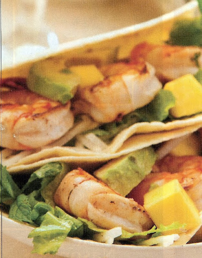 To make the fajitas, slide the seafood and vegetables off of each skewer into a warm tortilla. Add "red and green salsa" to toste. Roll up tortilla to enclose the filling.