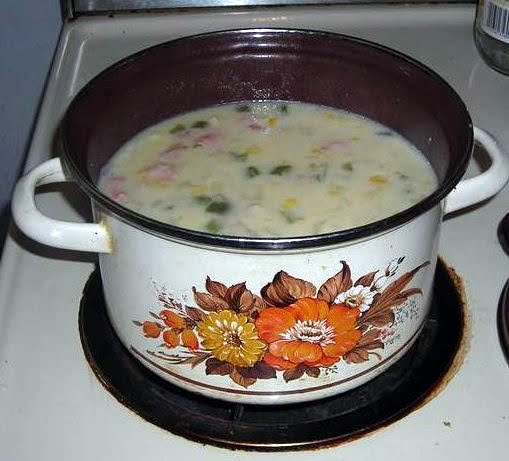 I use a dutch oven to make my Corn Chowder but any large pot will work. Depending on how much chowder you want to make will depend on the amount of ingredients you use. My recipe usually makes enough for two helpings for four or six hungry folks (depending on the size of your bowl you serve the chowder in).