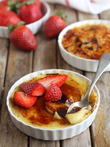 Broiler— Place the oven rack on the highest setting. Put the ramekins directly under the broiler and set it in the “high setting”. Wait for the sugar to melt and caramelize, rotating the ramekins as necessary for even browning. This can take up to 5 minutes.
