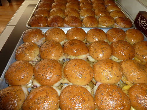 Slice rolls, if needed. Squeeze 24 rolls on an 11x15 inch sheet pan (it's okay if they are touching). Place one slice of deli meat (some of my slices were super thin, so I added another half slice with those) and one slice of cheese on the bottom half of each roll, then replace tops.