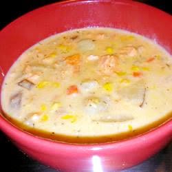 Stir in salmon, evaporated milk, corn, and cheese. Cook until heated through.