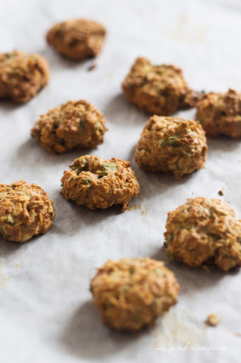 In a large mixing bowl mash the banana with a fork. Crack in the egg and stir in with the rest of the ingredients. Roll the dough into small meatball sized shapes and squish down with your thumb (It helps to wet your hands so the dough doesn’t stick). Place on a baking tray and bake in a 350F oven for 30 minutes or until cooked through. Leave to fully cool before treating your eagerly awaiting pooch.