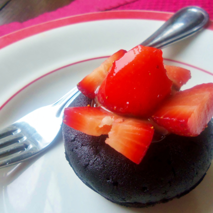 Note: If you’re having trouble getting the sides of the muffin cups dusted, you can dip a pastry brush into cocoa powder and brush the sides of each cup lightly with the cocoa powder.