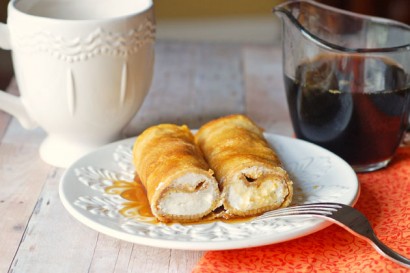Fill each crepe with about 1/4 cup or so of filling. Roll up the crepes and drizzle with maple syrup or dulce de leche.