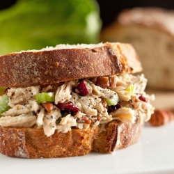 As far as chicken salads go, this recipe leans toward the sweeter side of savory with the addition of cranberries, apple juice, and honey. A nutritious, well-balanced sandwich.