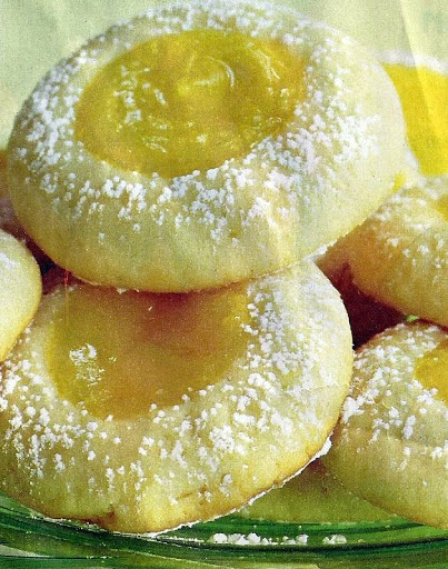 Heat oven to 350°F. You'll need baking sheets lined with nonstick foil, liners or parchment. Shape scant tablespoonsful of dough into balls; place 2 in. apart on prepared sheets. With index finger, make a deep indentation in center of each. Snip a tiny conner of ziptop bag and pipe lemon curd into dough indentations to fill completely (about 1 tsp per cookie).