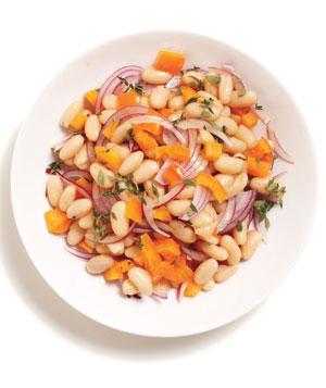 Stir in the beans, bell pepper, onion, and thyme. Serve cold or at room temperature.