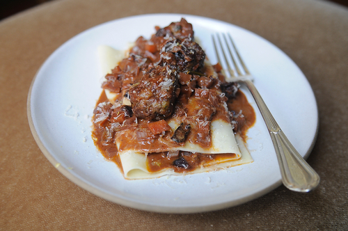 - 1 1/2 pounds short rib meat, sinew removed and ground, your butcher can do this for you too.