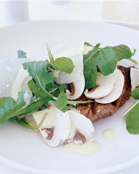 Sliced Beef with Lemony Arugula and Mushroom Salad