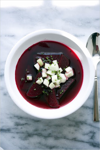 - This glistening, lemony summer borscht is infused with garlic and utterly refreshing, even thirst-quenching. If you enrich the soup with yogurt, the color will be dark pink. If you dont, it will be a clear, dark red.