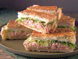 Cut the focaccia in half and brush the outside of the bread with olive oil. Place a slice of cheese on the bottom half of the panino. Top with tuna mixture, then the frisee, and then another slice of cheese. Finish with the top half of the focaccia.